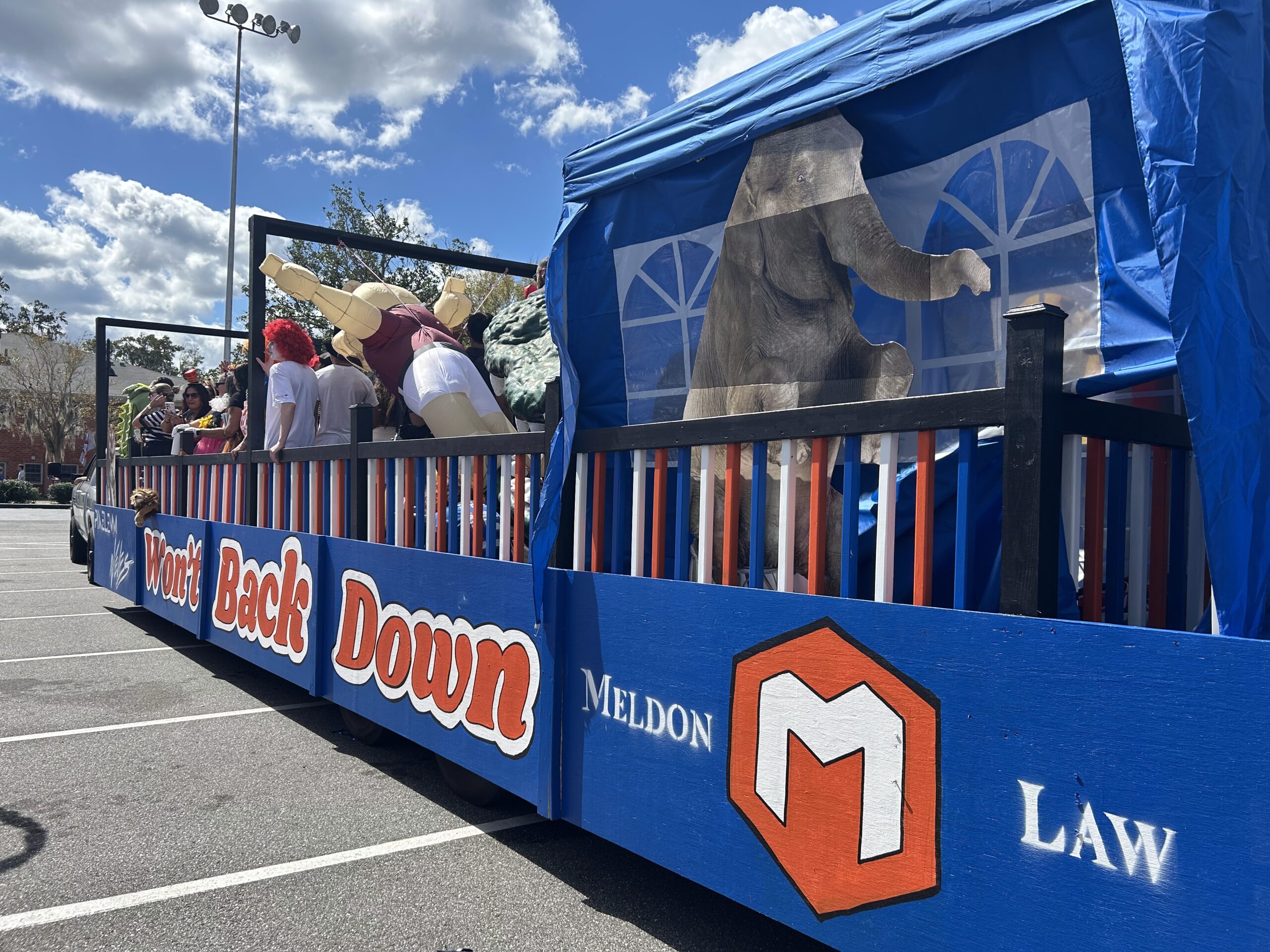 As the crowds cheered, the Meldon Law Circus Float rolled by—a bright reminder that Gainesville thrives on community spirit.